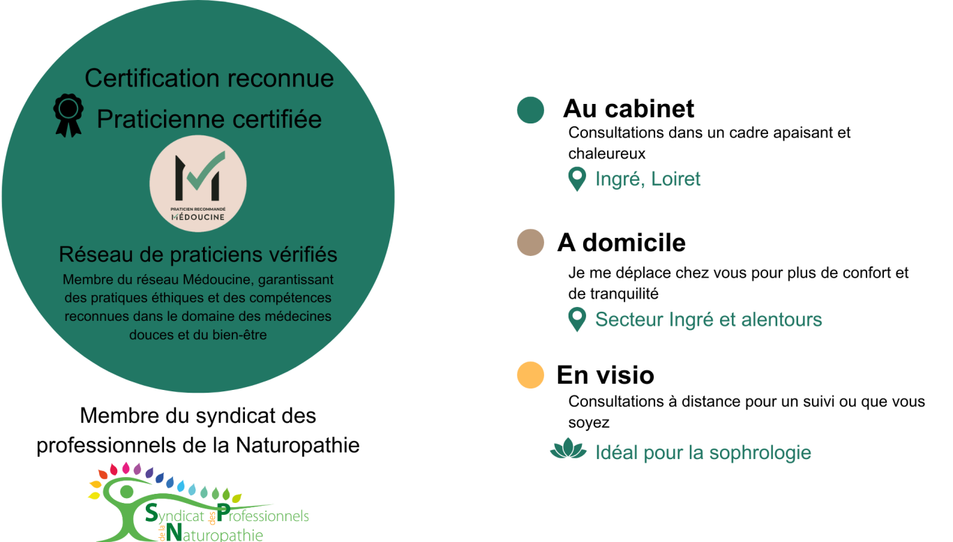 Grâce à mes certifications en Naturopathie, Sophrologie et Réflexologie, je vous accompagne dans votre quête d'équilibre émotionnel et physique.